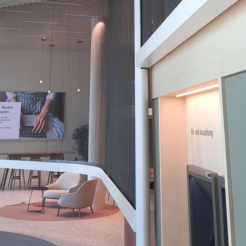 Für die Filiale der Raiffeisenbank Emmen wurden zwei bewegliche Abschlüsse aus Ringgeflecht realisiert. Ziel war es, eine sichere Barriere entlang der oberen Galerie zu schaffen und gleichzeitig die volle Zugänglichkeit zur darunterliegenden Infrastruktur – insbesondere den Geldautomaten – zu gewährleisten.
